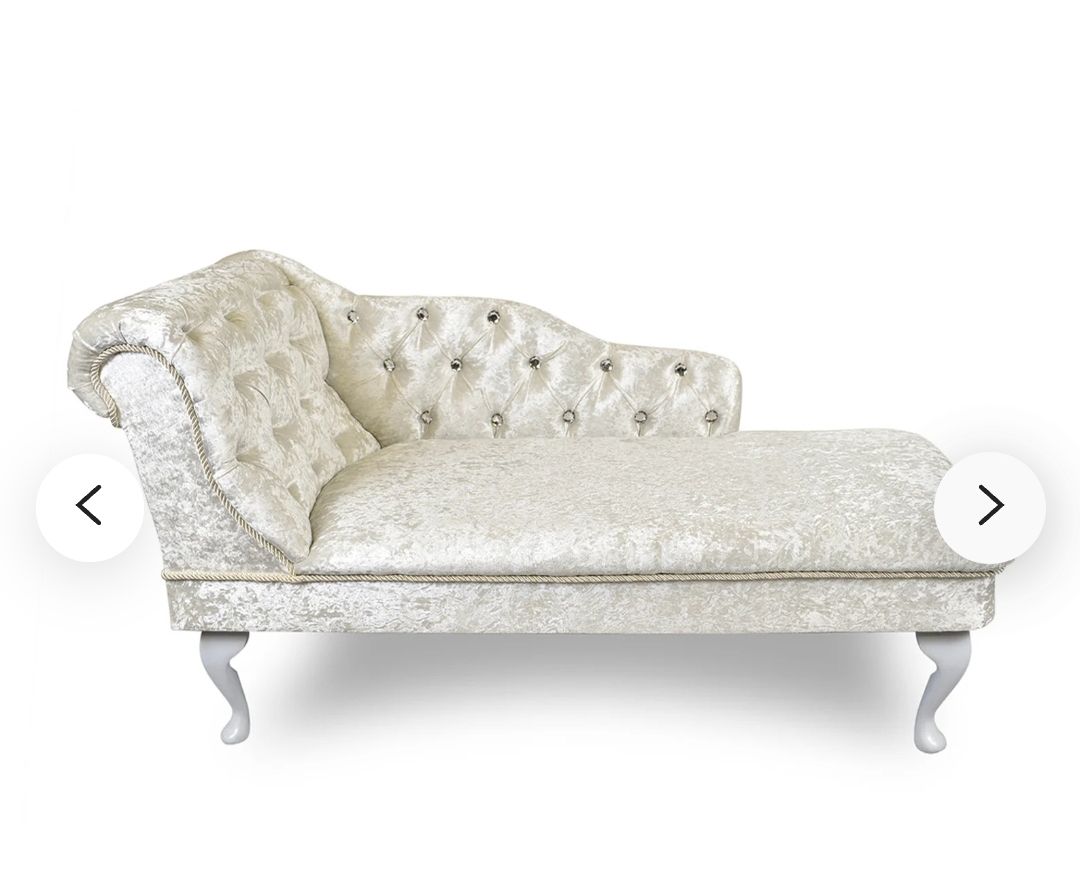 Chaise Lounge with backing and side, Pure White with crushed velvet, our most popular choice for Bride & Groom seating. Looks elegant in front of Backdrop with Décor. Suitable for 2 seated.